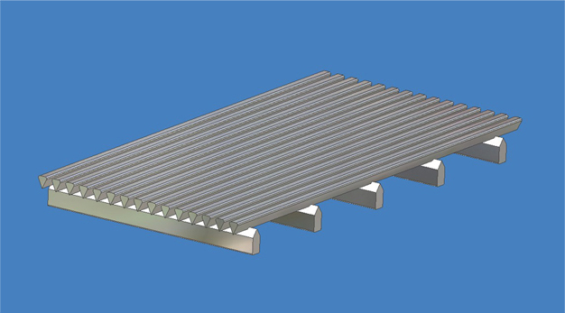 역삼각형 모양의 Profile Wire (WedgeWire / VeeWire)들을 Support Rod (SupportFin)에 연속적으로 특수용접, 연결한 필터 소재로서 틈새 사이(Slot)로 유체를 통과시켜 불순물을 여과하는 등 1차 필터 역할을 하는 제품입니다.